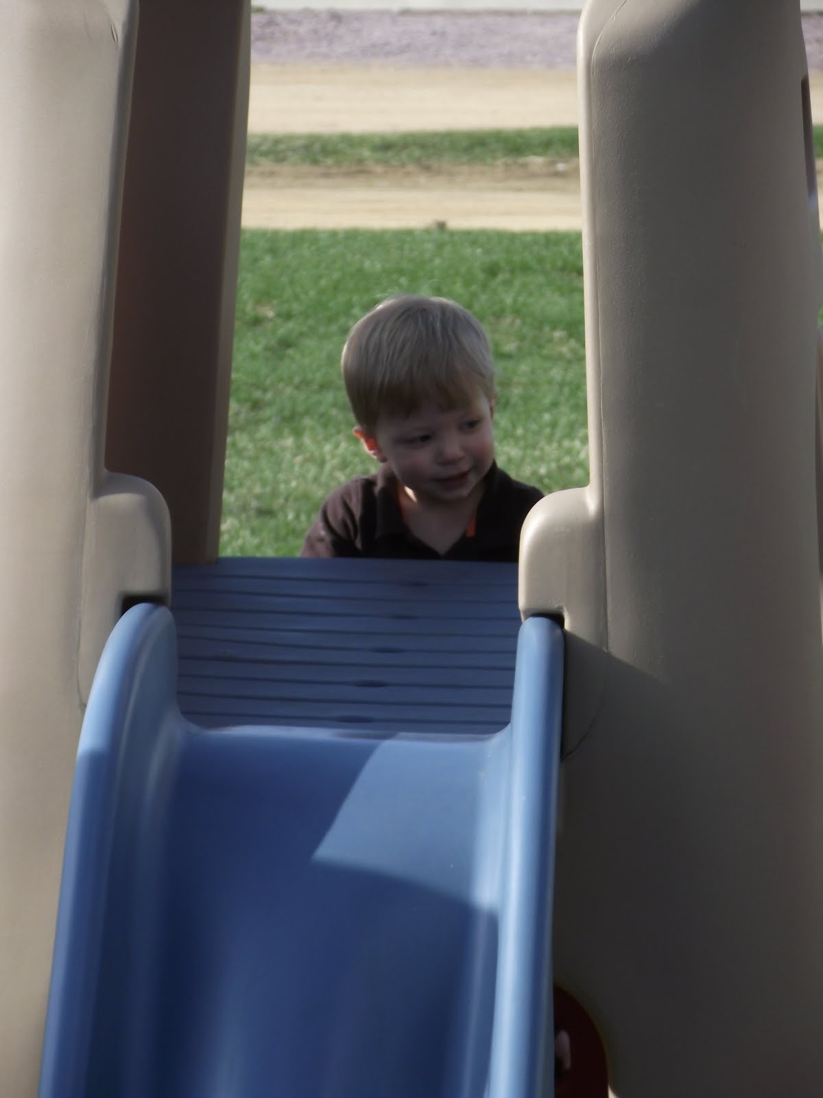 The boys climb up the playhouse solo now!